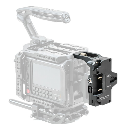La placa Tilta ES-T21-BP-AB permite a los cineastas profesionales alimentar sus cámaras Blackmagic PYXIS 6K o 12K mediante baterías Gold Mount de alta capacidad y, al mismo tiempo, alimentar varios accesorios. Esta placa se monta directamente en la ranura para la batería BP-U de la cámara y transmite la energía de la batería Gold Mount a la cámara.