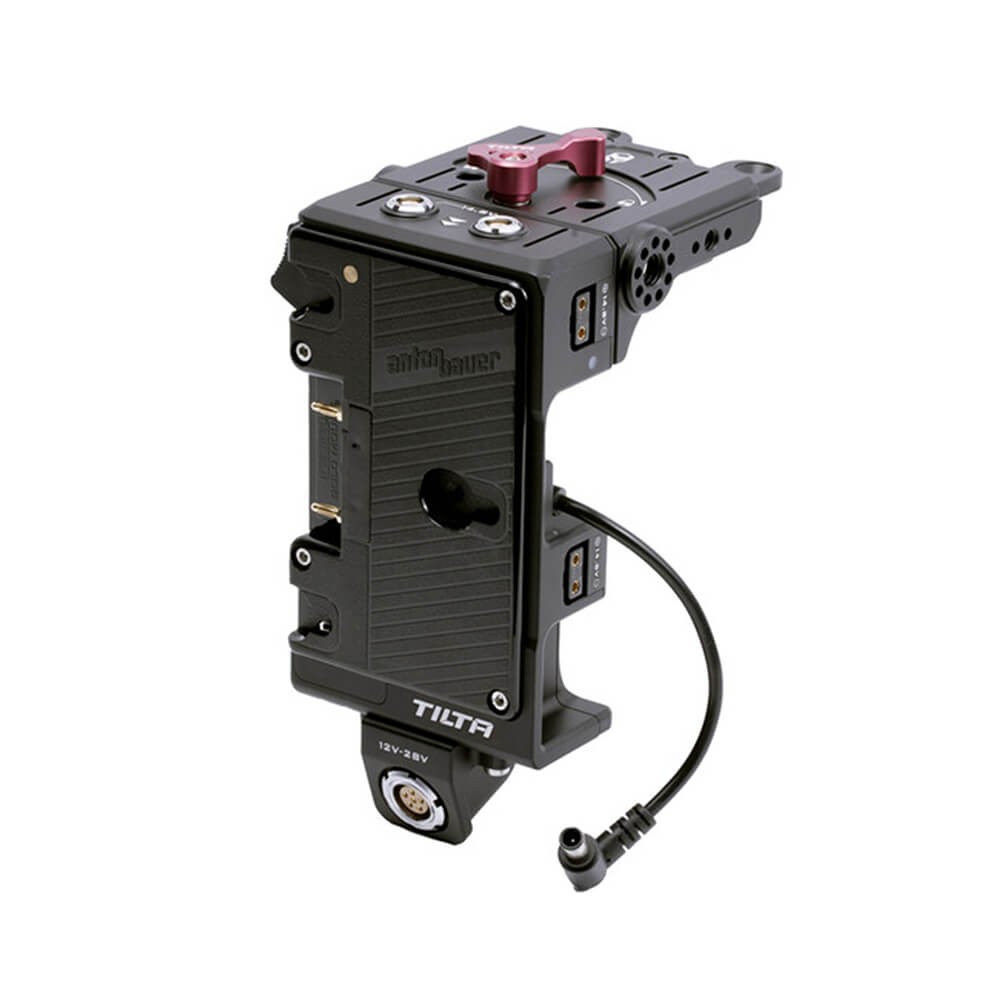 El Tilta ES-T18-BTP3-AB sustituye la placa V-Mount original de la cámara por una elegante solución Gold-Mount integrada en la jaula, que se ajusta perfectamente a la parte trasera de la cámara. Una batería Gold-Mount de alta capacidad alimenta simultáneamente la cámara FX9 y todos los accesorios a través de una amplia gama de salidas reguladas: tres puertos D-Tap de 14,8 V, dos salidas LEMO de 2 pines de 14,8 V, un puerto USB-A de 5 V y una entrada LEMO de 6 pines (12-28 V), que admite baterías externas o adaptadores de red para una alimentación ininterrumpida.