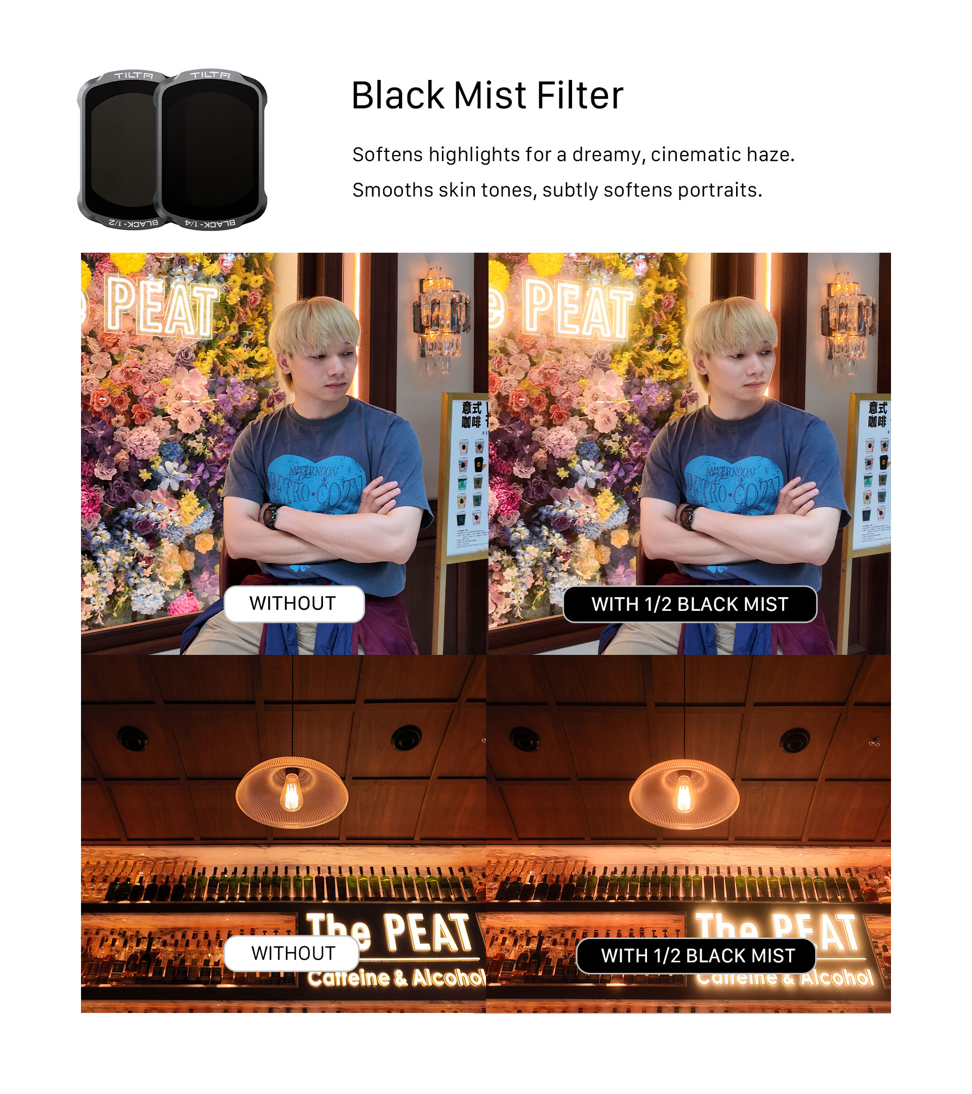 De este modo, crea una atmósfera visual suave y, al mismo tiempo, conserva la nitidez y más detalles en las sombras que un filtro difusor estándar. Es ideal para usuarios que buscan un aspecto difuso clásico sin que resulte demasiado molesto.
