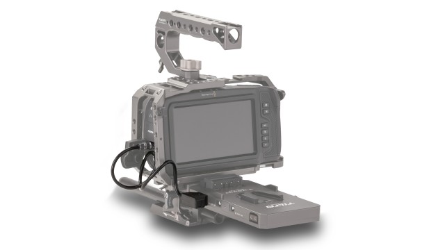 Este cable de alimentación P-tap se puede utilizar para prolongar la autonomía de la batería de la cámara BMPCC 4K/6K con las distintas placas y bases para baterías que ofrecemos. El extremo P-tap se conecta a una de las salidas P-tap de las placas de batería y las bases de batería, y el otro extremo se conecta al puerto de entrada de alimentación de la cámara BMPCC 4K/6K.