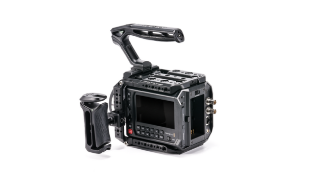 La innovadora placa lateral permite transiciones verticales rápidas y una alineación precisa de la placa base con el centro óptico del objetivo, lo que permite colocar la mayoría de los accesorios. También incluye un soporte SSD integrado para grabación externa, compatible con discos SSD de 52-60 mm de ancho y menos de 12 mm de grosor. Tanto la placa superior como la inferior están diseñadas para mantener la capacidad de refrigeración de la cámara, evitando obstruir sus orificios de ventilación para la disipación del calor.