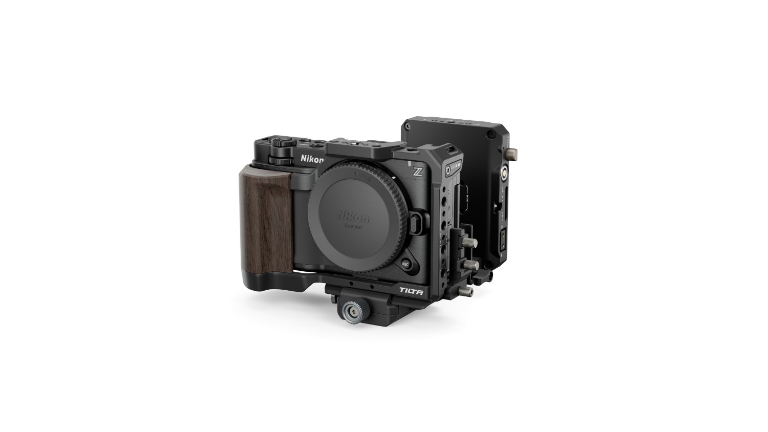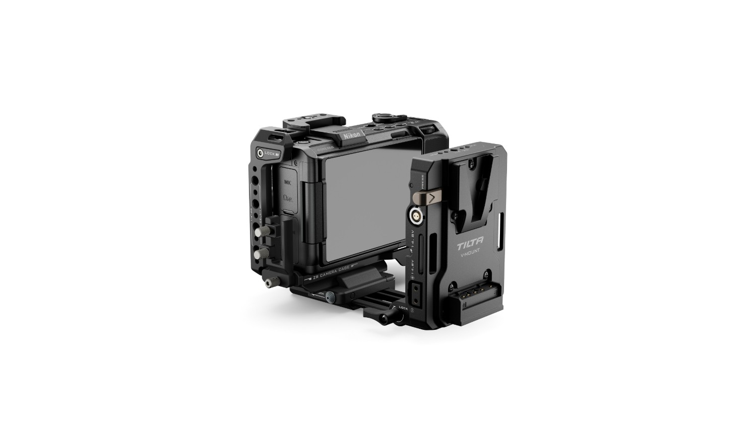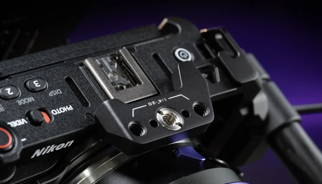 La base de este kit es una jaula completa para la cámara, que ofrece una mejor protección para el cuerpo de la Nikon ZR y , al mismo tiempo, sirve como base sólida para acoplar otros accesorios. Los puntos de montaje incluyen roscas M3, un soporte Cold Shoe, roscas de 1/4″-20 con puntos de fijación y un adaptador de 3/8″-16 a 1/4″-20.