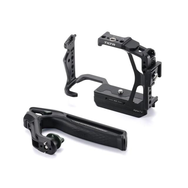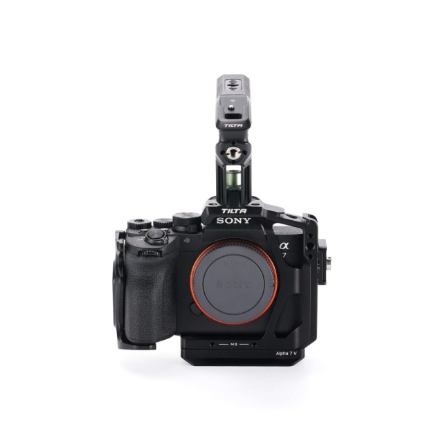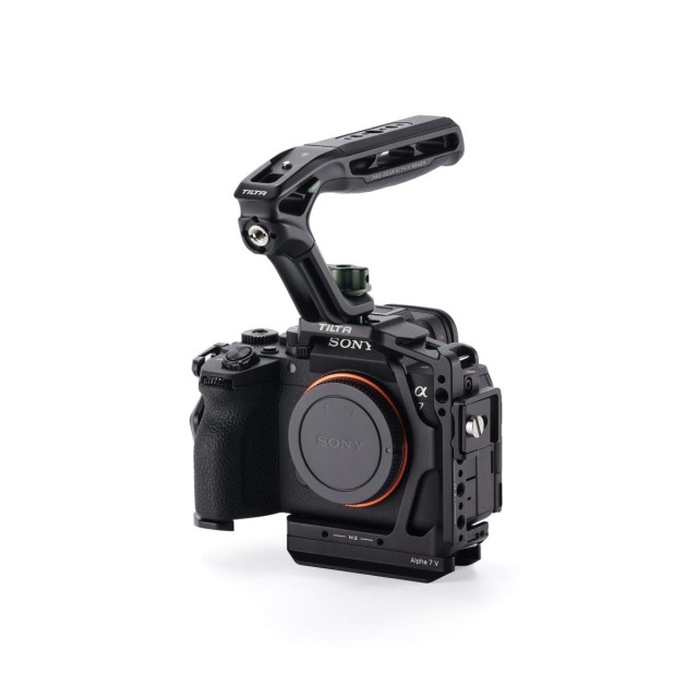 El Tilta Camera Cage para Sony Alpha 7 V Lightweight Kit en color negro es un sistema de montaje diseñado con precisión y pensado especialmente para las cámaras Sony Alpha 7V, Alpha 7IV y Alpha 7R V. Este kit ligero de medio armazón cuenta con un diseño deslizante ajustable que permite un posicionamiento preciso para una sujeción segura de estos modelos de cámara compatibles, garantizando así versatilidad para los usuarios con varios cuerpos. Mantiene el manejo natural de la cámara al ajustarse perfectamente al cuerpo sin obstaculizar los botones, el compartimento de la batería, los flashes originales, las empuñaduras de micrófono o los adaptadores de objetivos.