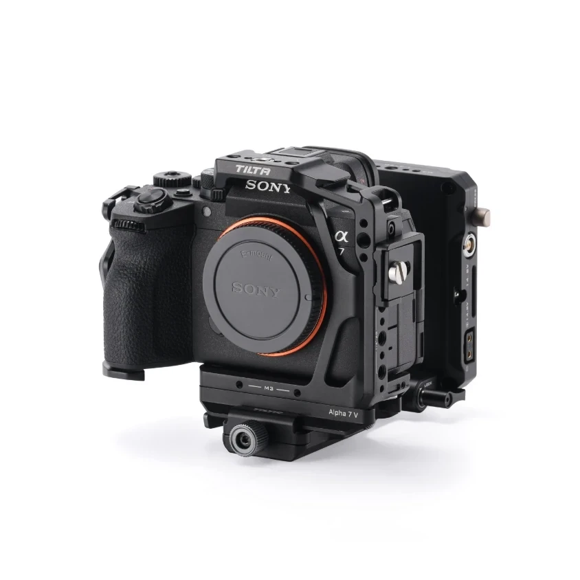 Este kit de jaula para cámara, con un diseño deslizante ajustable, permite un ajuste preciso de la posición para una fijación segura en varios cuerpos de cámara. Ofrece roscas de montaje de 1/4”-20 y 3/8”-16 con puntos de posicionamiento, así como una zapata para accesorios de tipo «cold shoe». La jaula es compatible con las Sony α7V, α7IV y α7R V.
