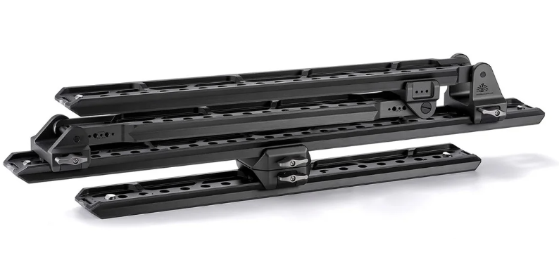 Las placas HDA-T18-DP sustituyen al sistema estándar de liberación rápida gracias a su compatibilidad con el estándar industrial Arri. Las placas están fabricadas en una aleación de aluminio ligera pero extremadamente resistente mediante mecanizado CNC y cuentan con un acabado de anodizado negro resistente. Cada placa está equipada con cierres de seguridad con resorte y pasadores de posicionamiento dobles que garantizan una holgura nula cuando están bloqueados. Una placa se fija de forma permanente a la parte inferior del cardán/jaula, mientras que la placa receptora se fija al cabezal del brazo Hydra Alien Pro, lo que permite a los operadores montar y desmontar todo el equipo de cámara en cuestión de segundos, ideal para cambiar rápidamente entre configuraciones en el vehículo, en un trípode o en mano sin necesidad de volver a equilibrar.