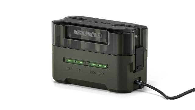 Gracias a su capacidad para cargar completamente cuatro baterías EN-EL15C, los usuarios estarán preparados para hasta 13 horas de grabación de vídeo o tendrán energía suficiente para procesar 2400 fotografías, lo que resulta ideal para sesiones fotográficas prolongadas.