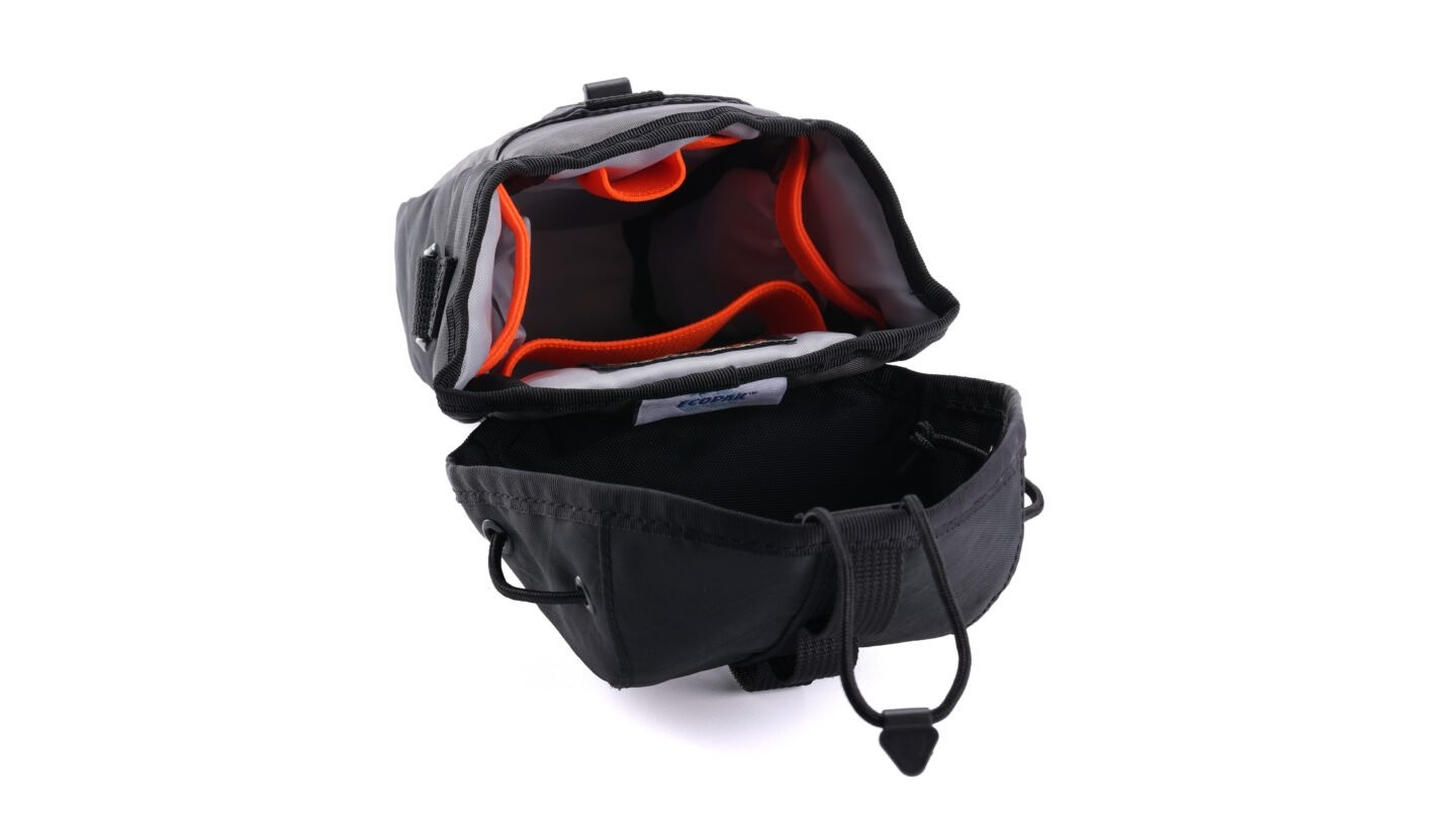 Sistema de sujeción universal: La bolsa está equipada con un ingenioso gancho en la parte trasera con un anilla en D DURAFLEX y un mosquetón en forma de S de aleación de aluminio. Este mosquetón es extremadamente resistente, ofrece una capacidad de carga máxima de 143,3 libras (65 kg) y permite a los usuarios fijar fácilmente la bolsa directamente a la ropa (por ejemplo, a la presilla del cinturón) o utilizarlo para sujetar otro equipo necesario.