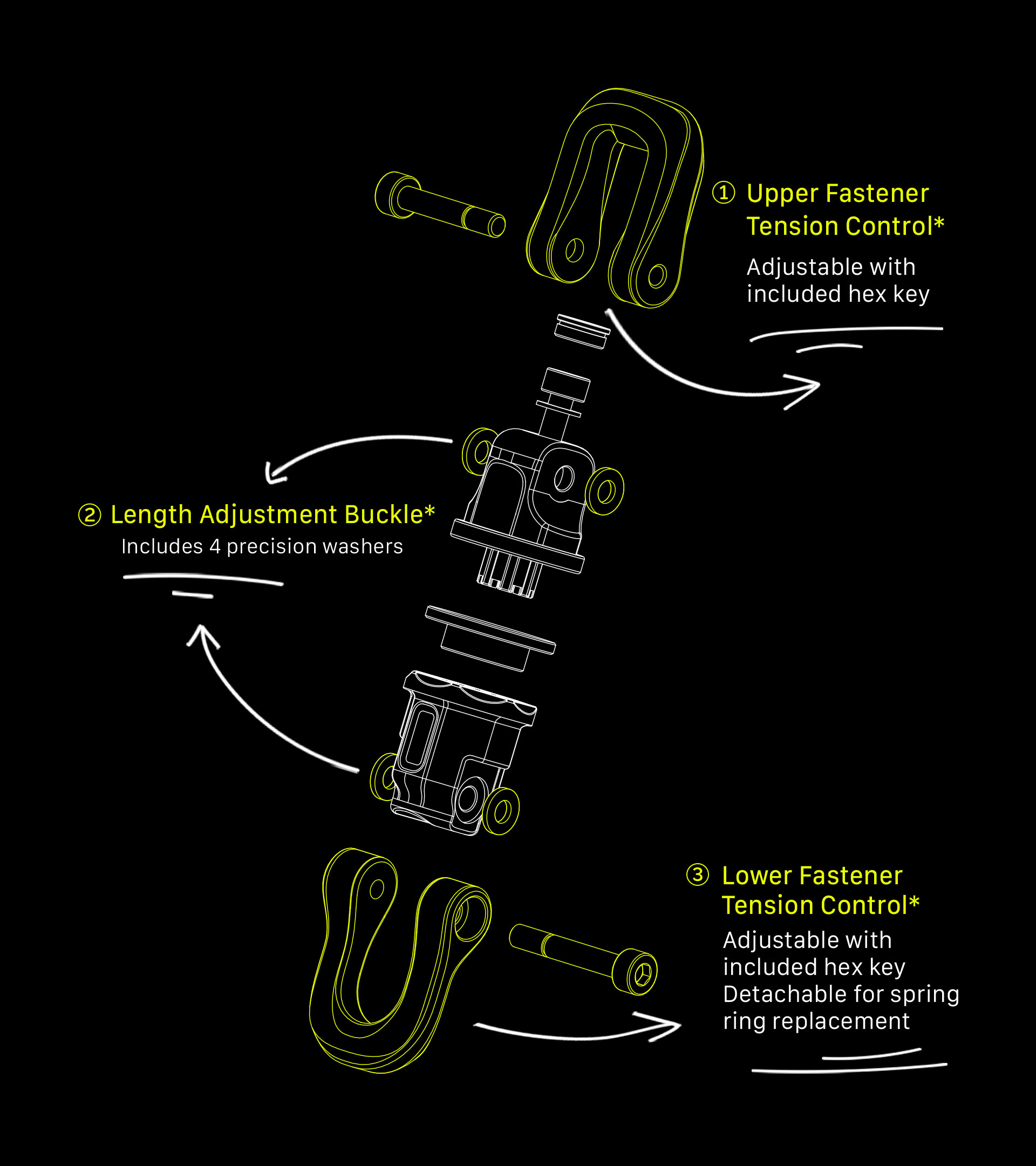 La hebilla intuitiva permite un ajuste fácil y rápido de la longitud para diferentes configuraciones, y las hebillas magnéticas de cierre rápido avanzadas utilizan la tecnología Fidlock HOOK para una flexibilidad extrema.