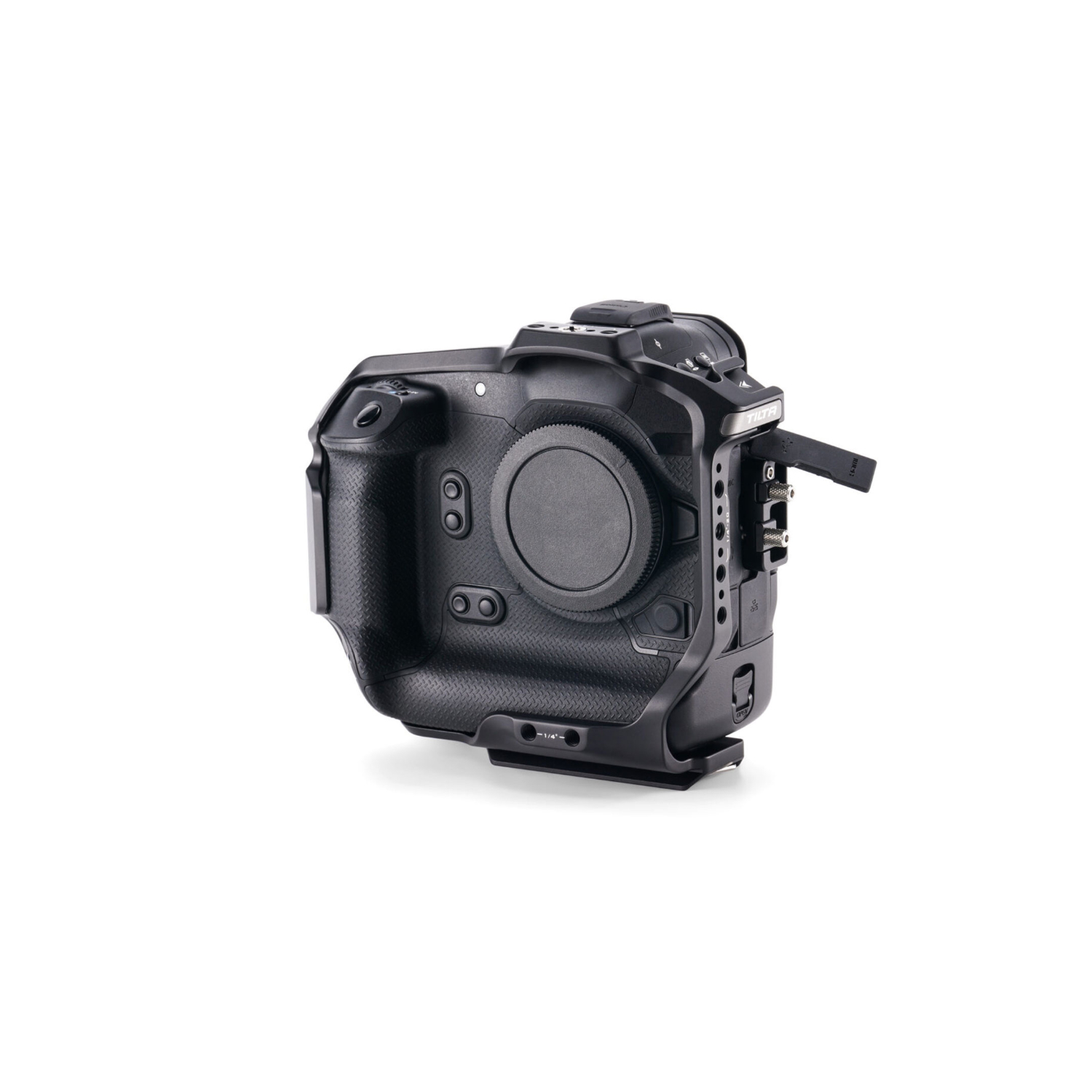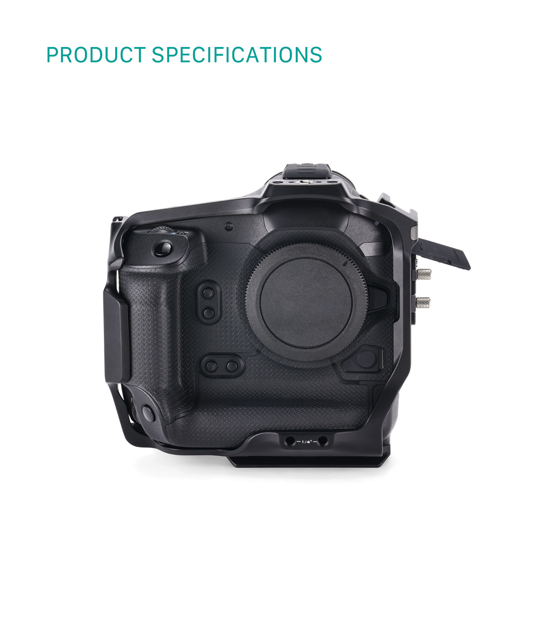 Presentamos la jaula para toda la cámara Canon R1. Esta proporciona una protección adicional al cuerpo de la cámara y, al mismo tiempo, amplía las posibilidades de acoplar diversos accesorios. Esta jaula completa para la cámara está equipada con un receptor de zapata fría, fijaciones para la correa de muñeca, roscas de 1/4″-20 con puntos de referencia y un adaptador de rosca de 3/8″-16 a 1/4″-20.
