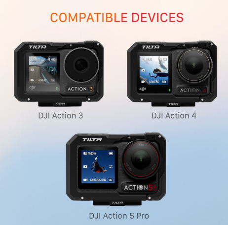 La jaula completa para cámara Tilta TA-T72-FCC-TG (gris titanio) es un resistente marco protector para la DJI Osmo Action 5 Pro/4/3, listo para grabar, que incorpora soporte para filtros magnéticos, un sistema de fijación rápida a ambos lados para cambiar la batería al instante, un orificio superior, una rosca lateral de 1/4"-20 y compatibilidad total con la base magnética y los filtros de acción de Tilta, todo ello en un ligero cuerpo de 150 g fabricado en magnesio y aluminio con almohadillas de silicona amortiguadoras.