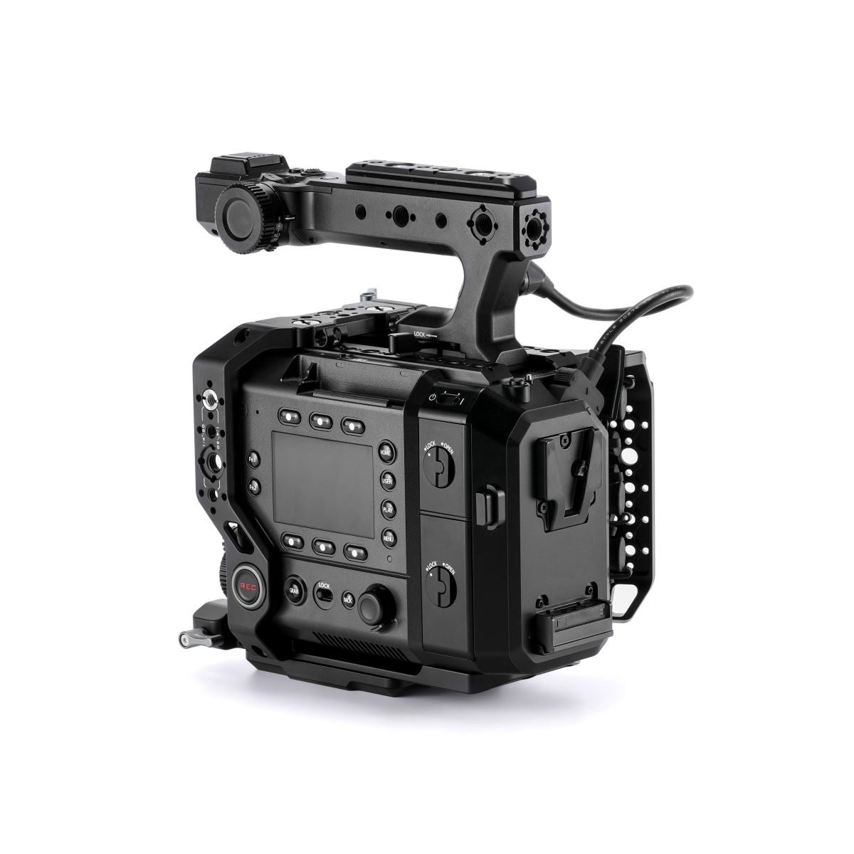 La carcasa sustituye a la placa de montaje trasera original de la cámara y añade varios puntos de montaje roscados para accesorios, como transmisores inalámbricos, módulos de alimentación y monitores externos.