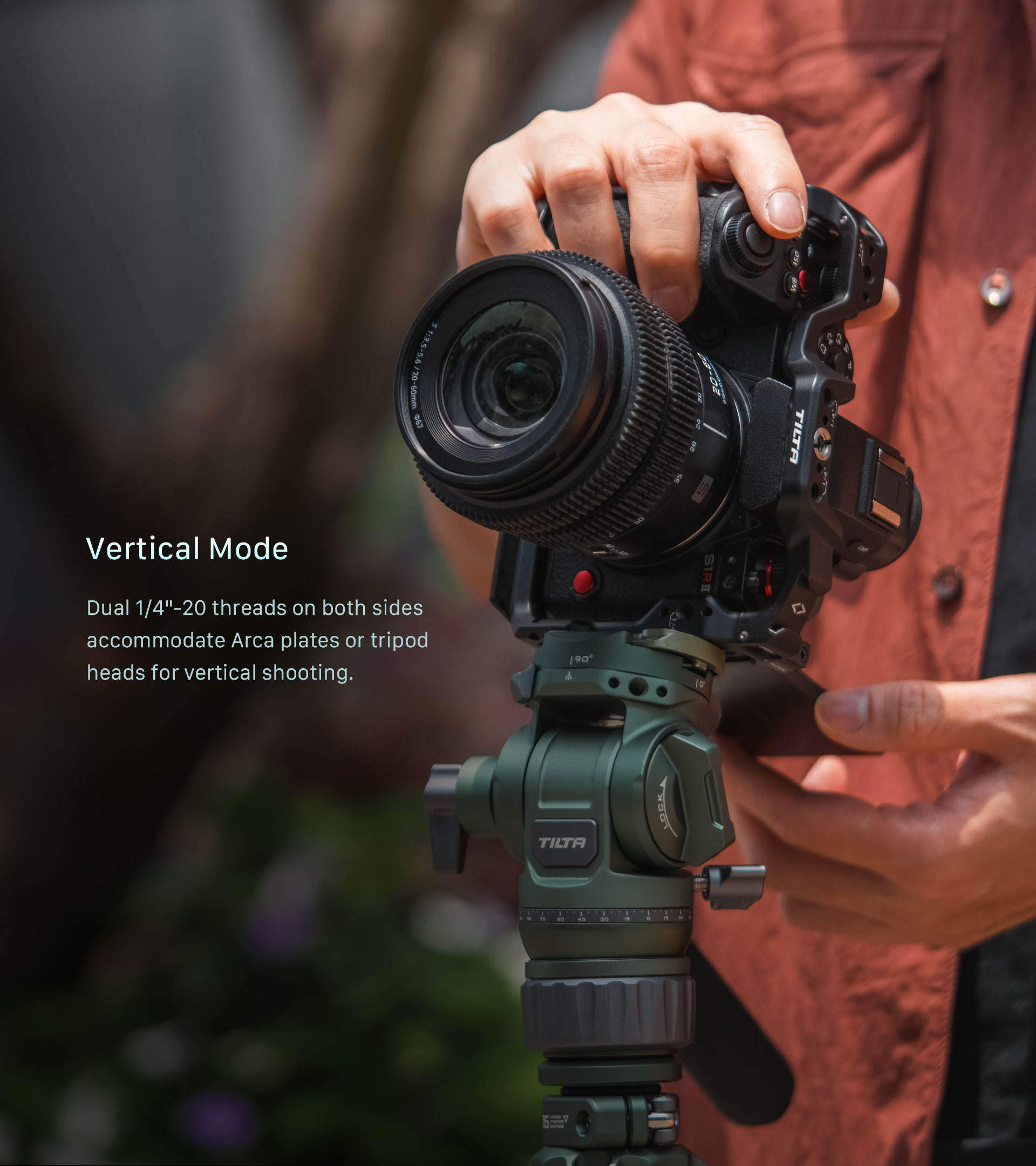 Los puntos de montaje en el brazo lateral permiten instalar fácilmente una placa ARCA de fijación rápida (no incluida), lo que permite pasar rápidamente a la configuración vertical.