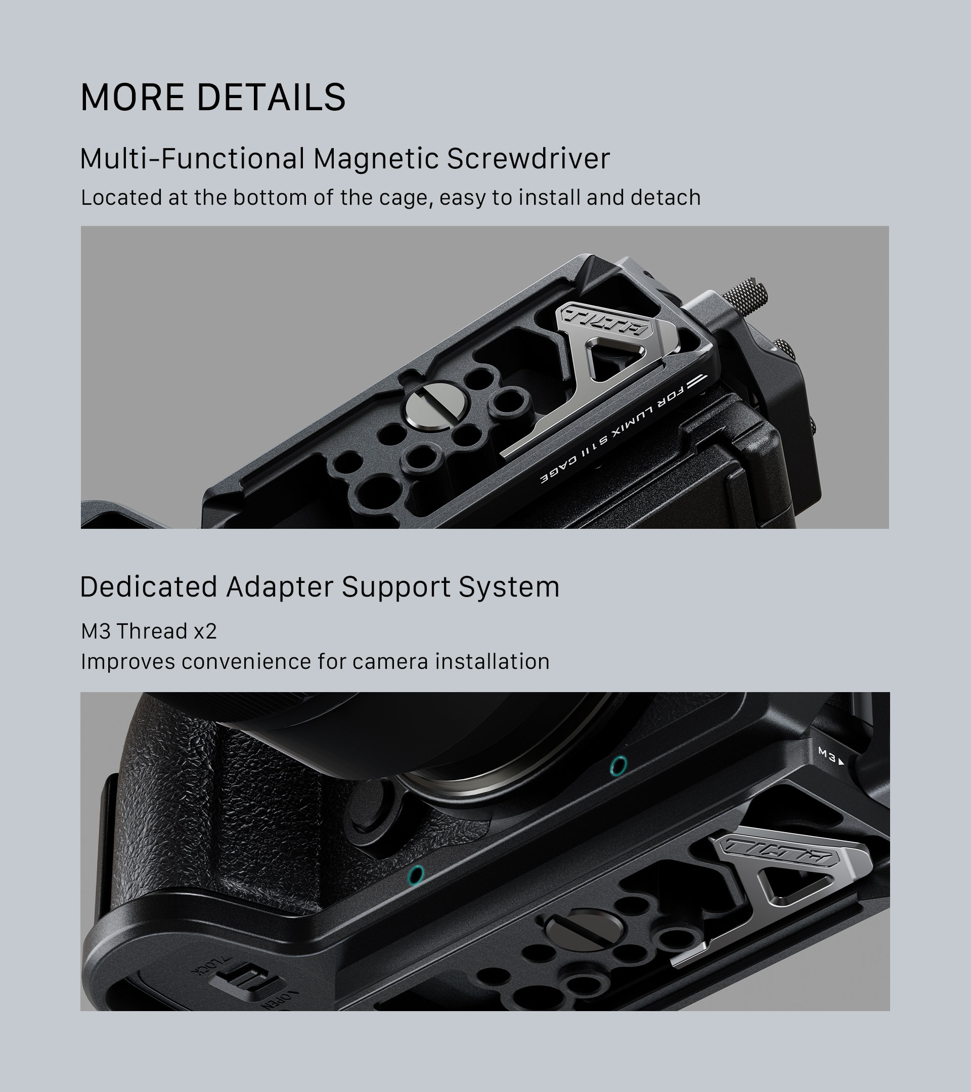• Diseñado a medida para los cuerpos de las cámaras Panasonic Lumix S1R II, S5 II, S5 IIX y G9 II