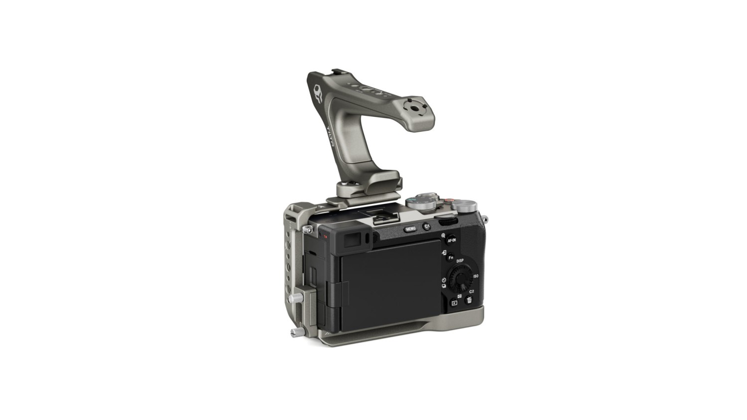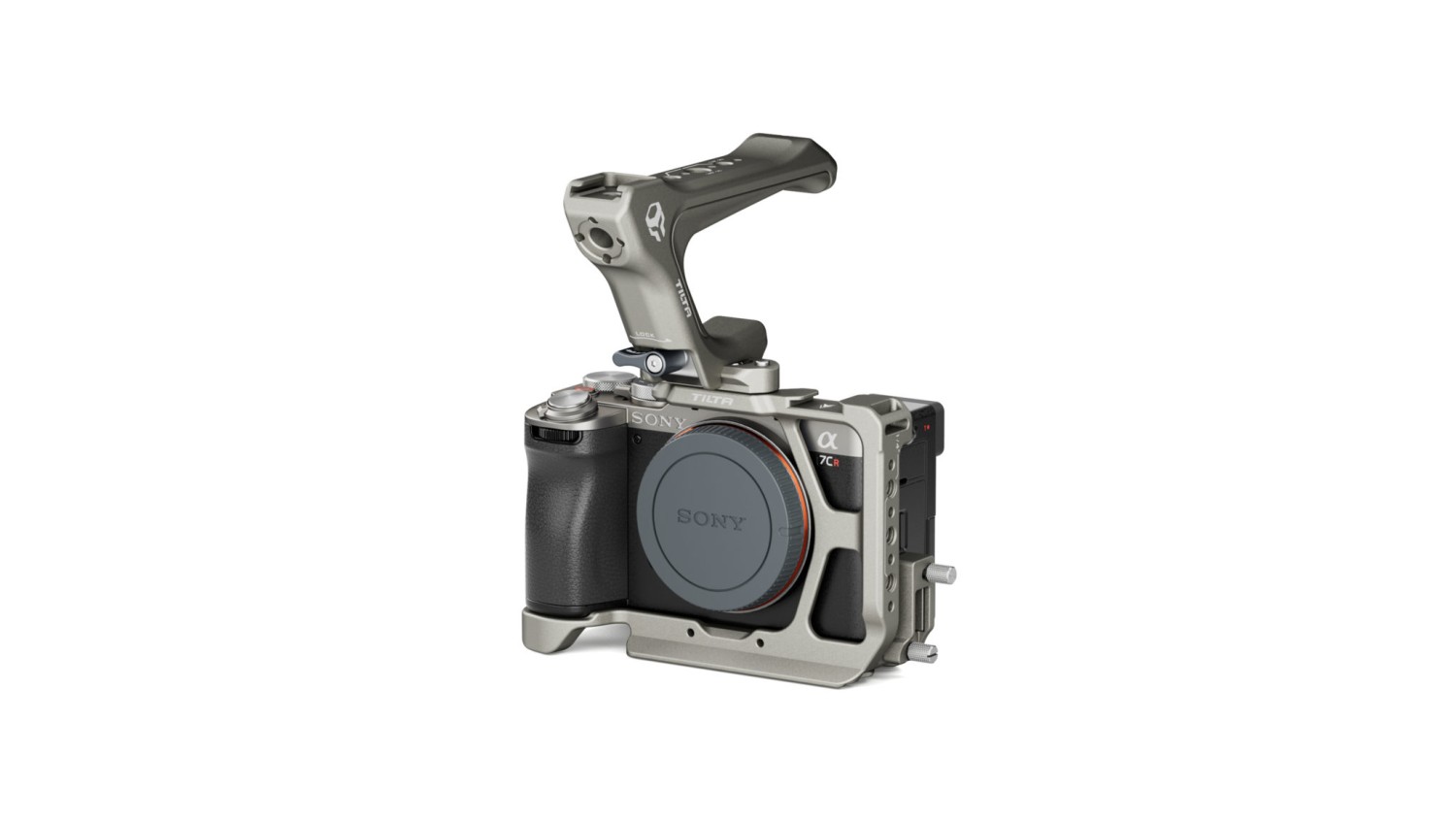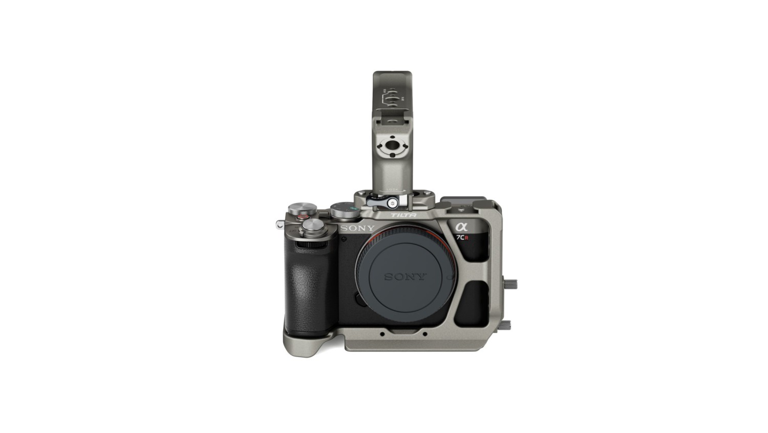 Esta semicaja protege parcialmente el cuerpo de la cámara y ofrece innumerables posibilidades para acoplar otros accesorios mediante puntos de montaje, como el receptor de zapata fría, el riel NATO y las roscas de 1/4″-20 con puntos de fijación.