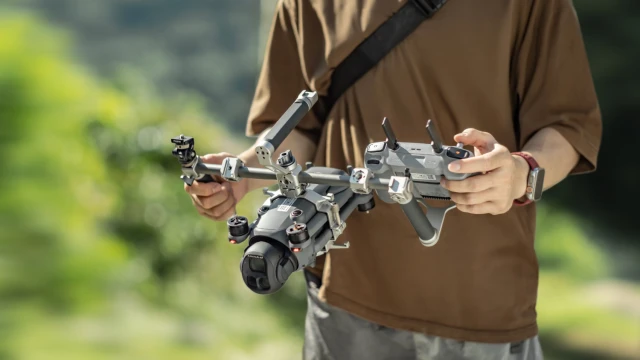 Este sistema de soporte manual abre nuevas posibilidades creativas al convertir tu dron en un equipo de cámara manual totalmente funcional.