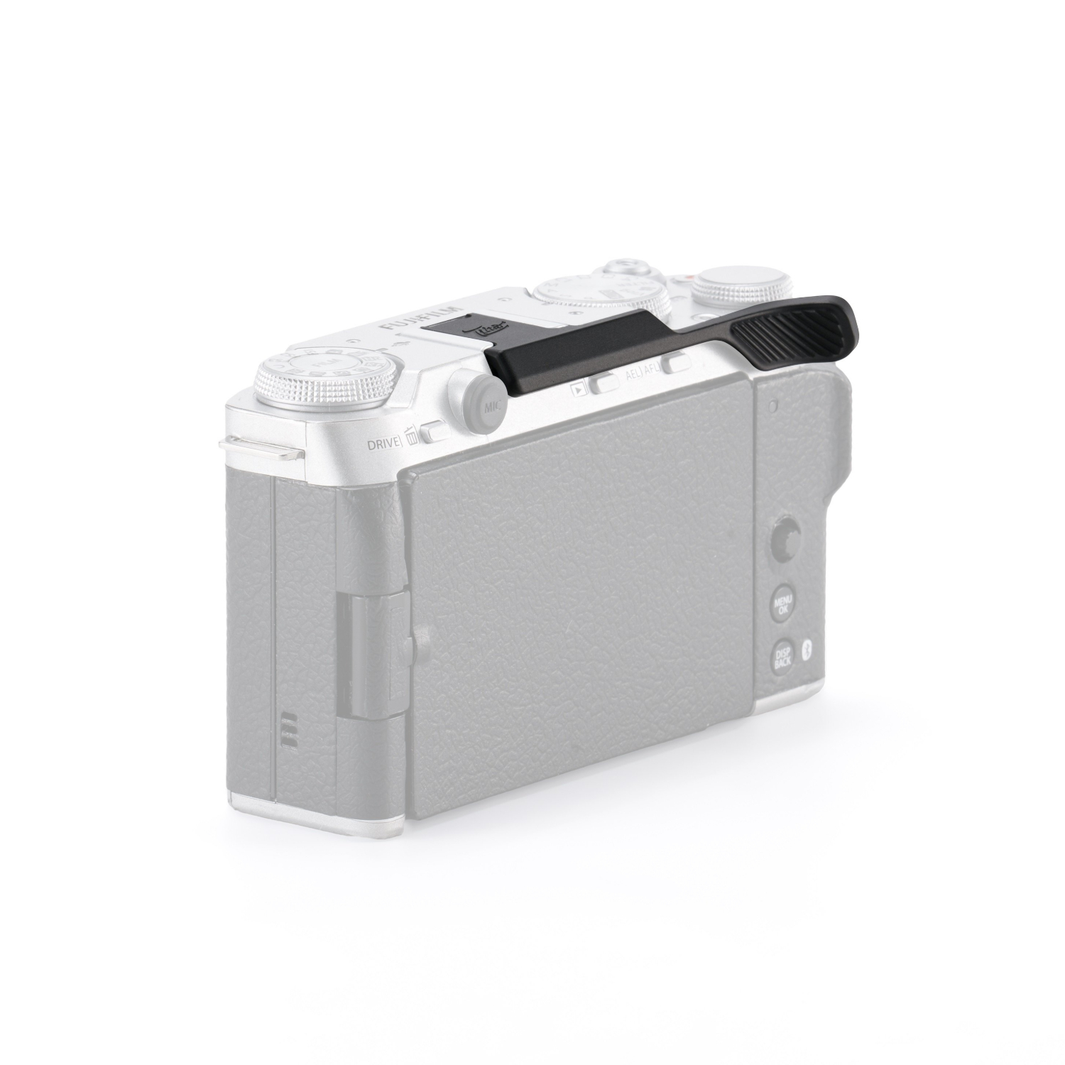 El soporte Hot Shoe Thumb Bracket es un accesorio mecánico ligero para la cámara Fujifilm X-M5. Este soporte para el pulgar se acopla a la zapata de la cámara para proporcionar una posición cómoda y segura donde apoyar el pulgar.
