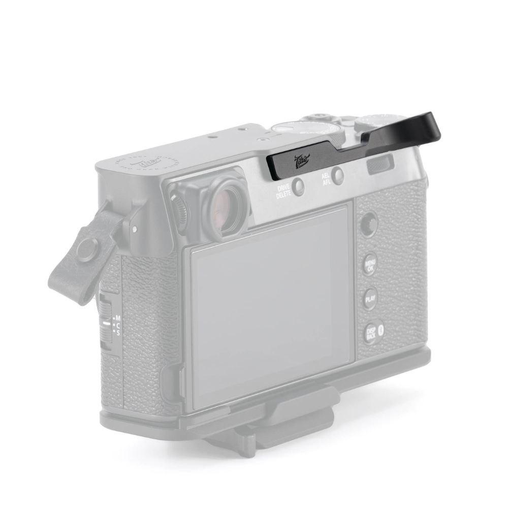 El soporte Thumb Bracket para la zapata es un accesorio mecánico ligero diseñado para la cámara Fujifilm X100VI.