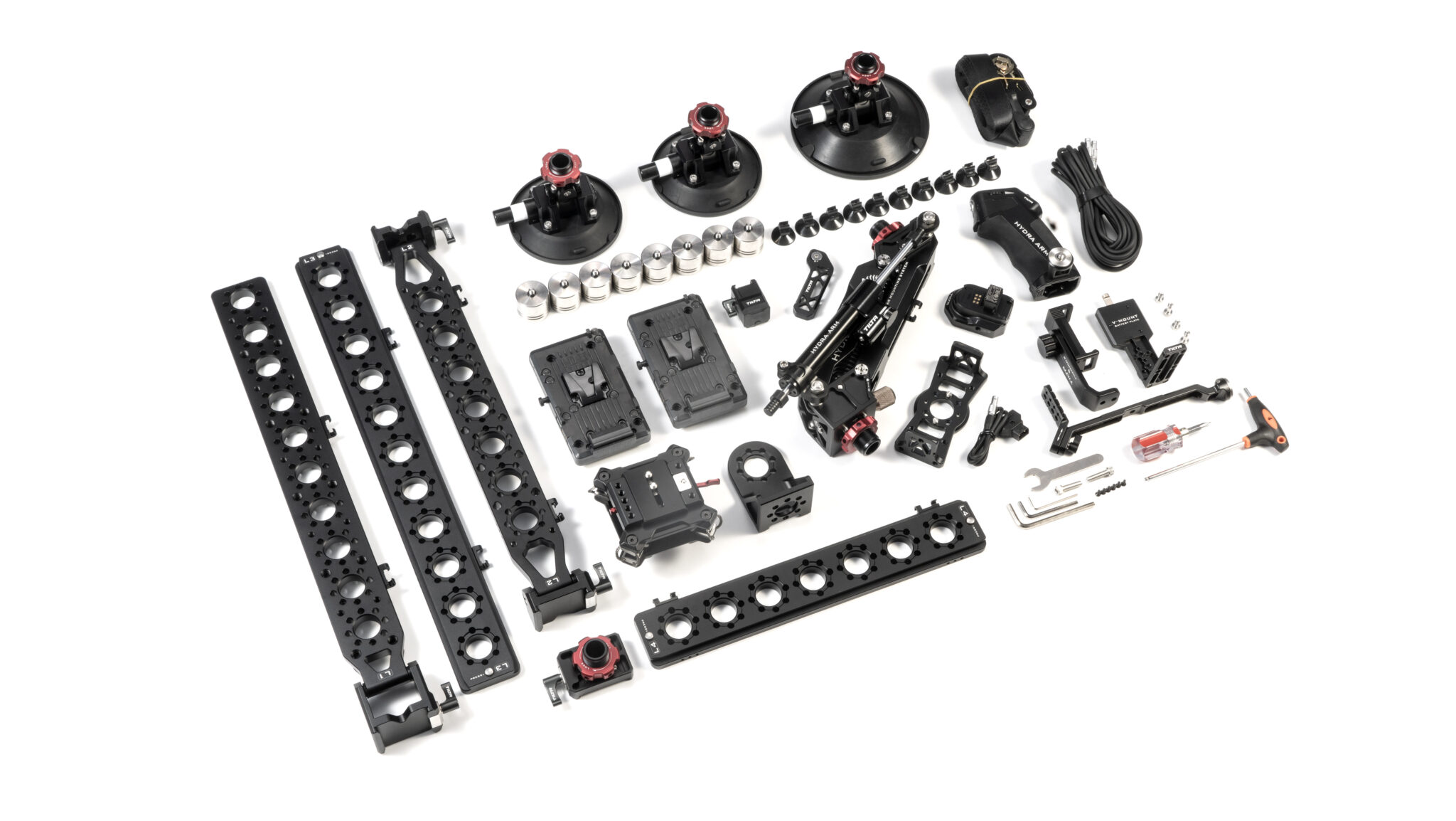 El kit Hydra Alien Pro supone una revolución en el ámbito de la cinematografía automovilística para estabilizadores más pequeños, como el DJI RS 2. El brazo amortiguador hidráulico principal aísla las vibraciones y garantiza la fluidez del estabilizador incluso en carreteras irregulares, mientras que las cuatro ventosas de alto vacío (protegidas con silicona) proporcionan una sujeción resistente de hasta un peso total de 50 kg. Ocho configuraciones flexibles (modo alto/bajo, interior/exterior, boca abajo, etc.) se adaptan a cualquier vehículo o toma, con un cabezal con resorte para la configuración invertida del estabilizador. El paquete incluye el kit de control remoto RS 2, que ofrece control total por cable/inalámbrico (giro/inclinación/rotación, enfoque, inicio/parada) desde el interior del coche, además de un soporte especial para monitor. Todo el kit se alimenta mediante una placa de batería Gold Mount y las placas protectoras especiales del RS 2 aumentan la seguridad al conducir a alta velocidad. Con un peso total de tan solo 14,3 lb, se instala rápidamente, se empaqueta de forma compacta y ofrece tomas desde el coche a nivel de Hollywood sin el peso ni la complejidad de los kits tradicionales.