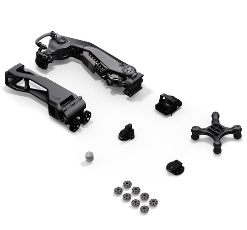El brazo está diseñado para gimbals profesionales y admite cargas pesadas, medias y ligeras de 7 kg a 13 kg, por lo que es adecuado para rigs como el DJI Ronin 2, RS 4 Pro, Ronin 4D y MōVI Pro. Las múltiples roscas para accesorios de 1/4"-20 y 3/8"-16 permiten opciones de montaje flexibles. La pantalla OLED táctil integrada permite controlar la amortiguación, el modo de carga y el nivel de batería en tiempo real. El cabezal con amortiguadores está equipado con amortiguadores intercambiables que reducen las vibraciones de alta frecuencia e incluye una placa de fijación rápida tipo Manfrotto para facilitar la fijación del gimbal.