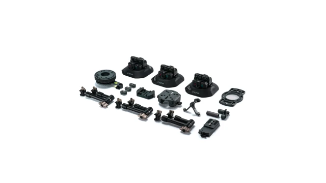 El kit Pro Kit incluye tres brazos articulados resistentes y tres ventosas electrónicas. Esto proporciona una opción de fijación segura y flexible para nivelar el sistema en diferentes ángulos sobre el vehículo.