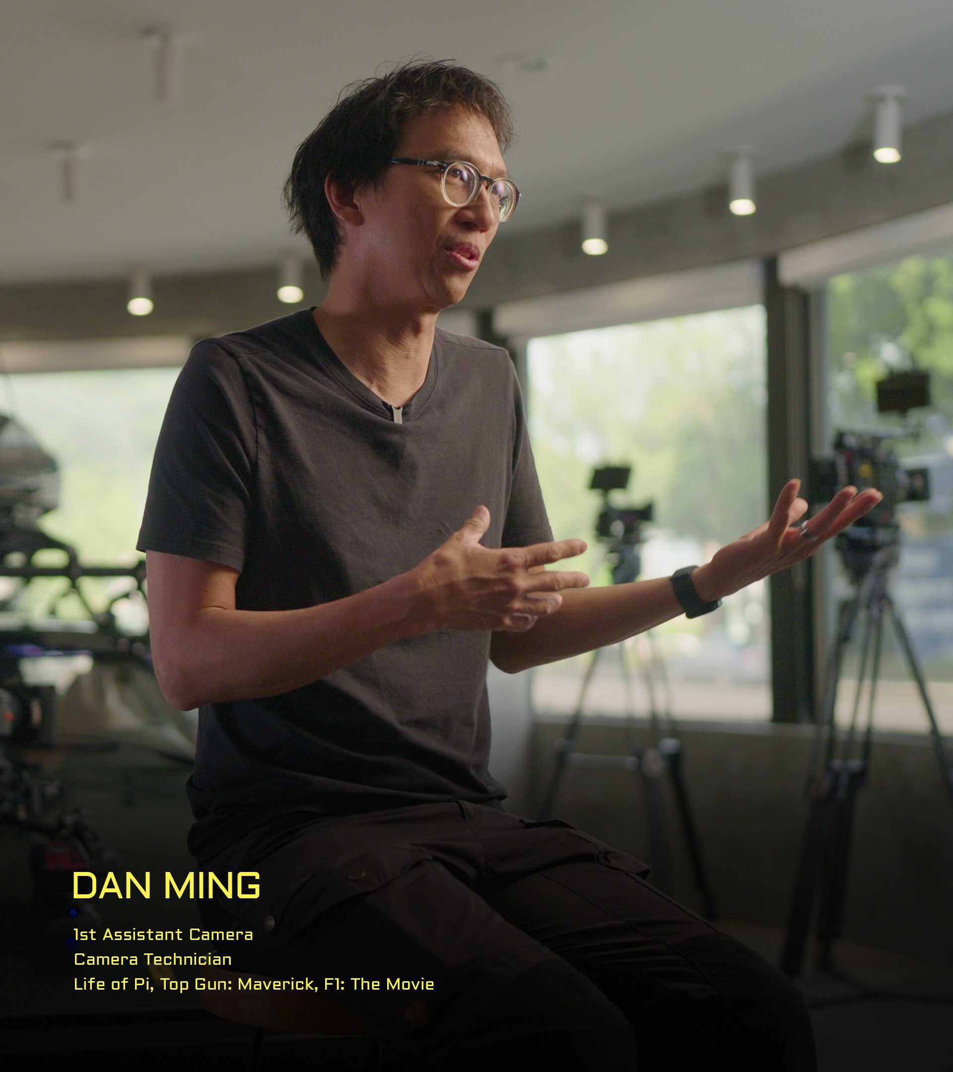 Dan Ming trabajó como primer asistente de cámara e ingeniero de sistemas en la película F1: The Movie. Desempeñó un papel clave en el desarrollo del prototipo de sistema compacto «Sensor on a Stick» de Sony y colaboró con Panavision en el desarrollo del sistema Pana-Pan.