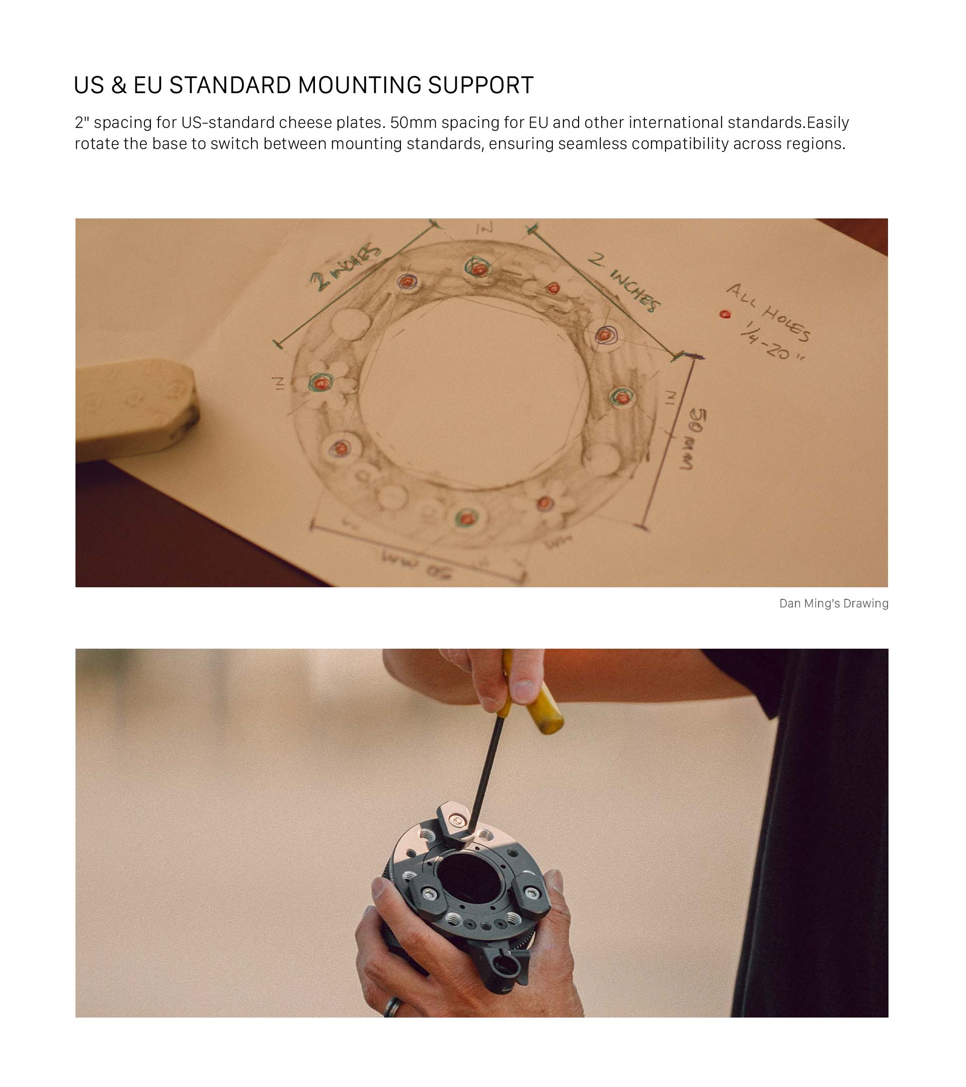 Esta base también está equipada con un eje de inclinación ajustable que ayuda a encuadrar y crear ángulos únicos.