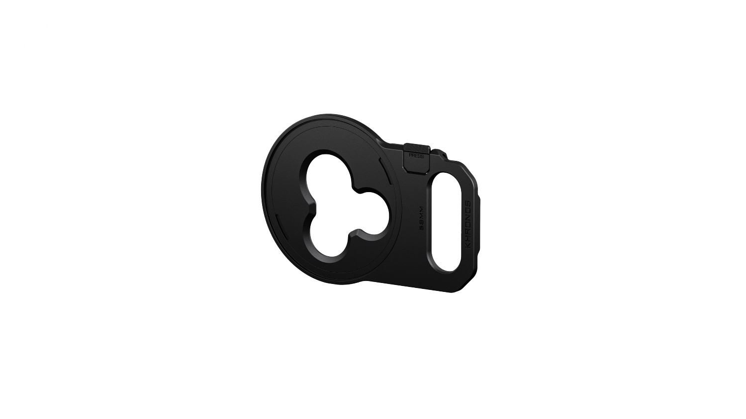 Sistema de liberación rápida y seguro: La bandeja está diseñada para un manejo rápido. Se encaja directamente en una ranura especial de la funda Khronos o Khronos Lite y cubre todas las lentes de la cámara del iPhone.