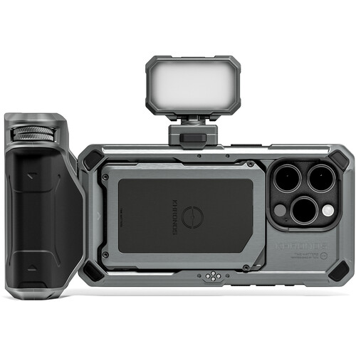 El kit básico Khronos para iPhone 15 Pro en color gris espacial con batería está diseñado especialmente para los entusiastas de la filmación con el móvil. Incluye una funda Khronos para iPhone 15 Pro que garantiza una sujeción segura y es compatible con el ecosistema de accesorios Khronos. El kit incluye el mango Khronos Focus PD Handle para una mayor estabilidad…