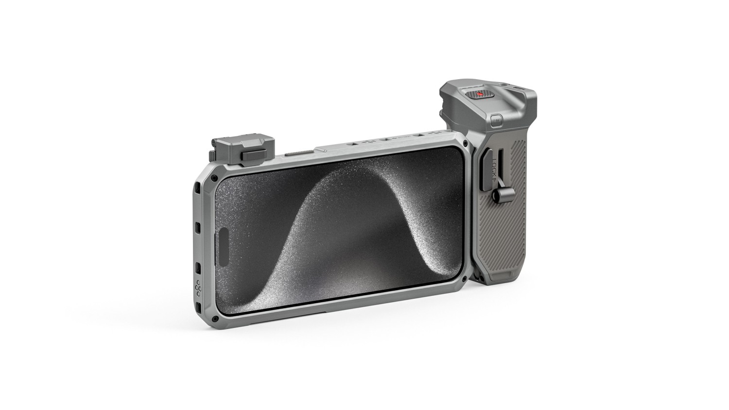 La empuñadura se conecta al iPhone 15 mediante un cable USB-C integrado y utiliza Bluetooth para controlar el enfoque o el zoom mediante un selector situado en la parte frontal de la empuñadura. Esto también garantiza una mayor estabilidad al manejar el sistema, y el botón de grabación asegura que los usuarios no tengan que soltar la empuñadura para empezar a grabar.