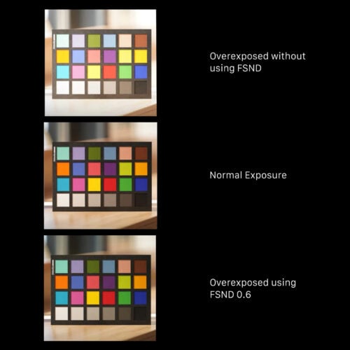 Los filtros ND incluidos proporcionan un mayor control sobre la exposición al permitir a los usuarios reducir la luz visible para el sensor, lo que también ayuda a mantener una velocidad de obturación constante al fotografiar en entornos con mayor luminosidad, como la luz diurna.