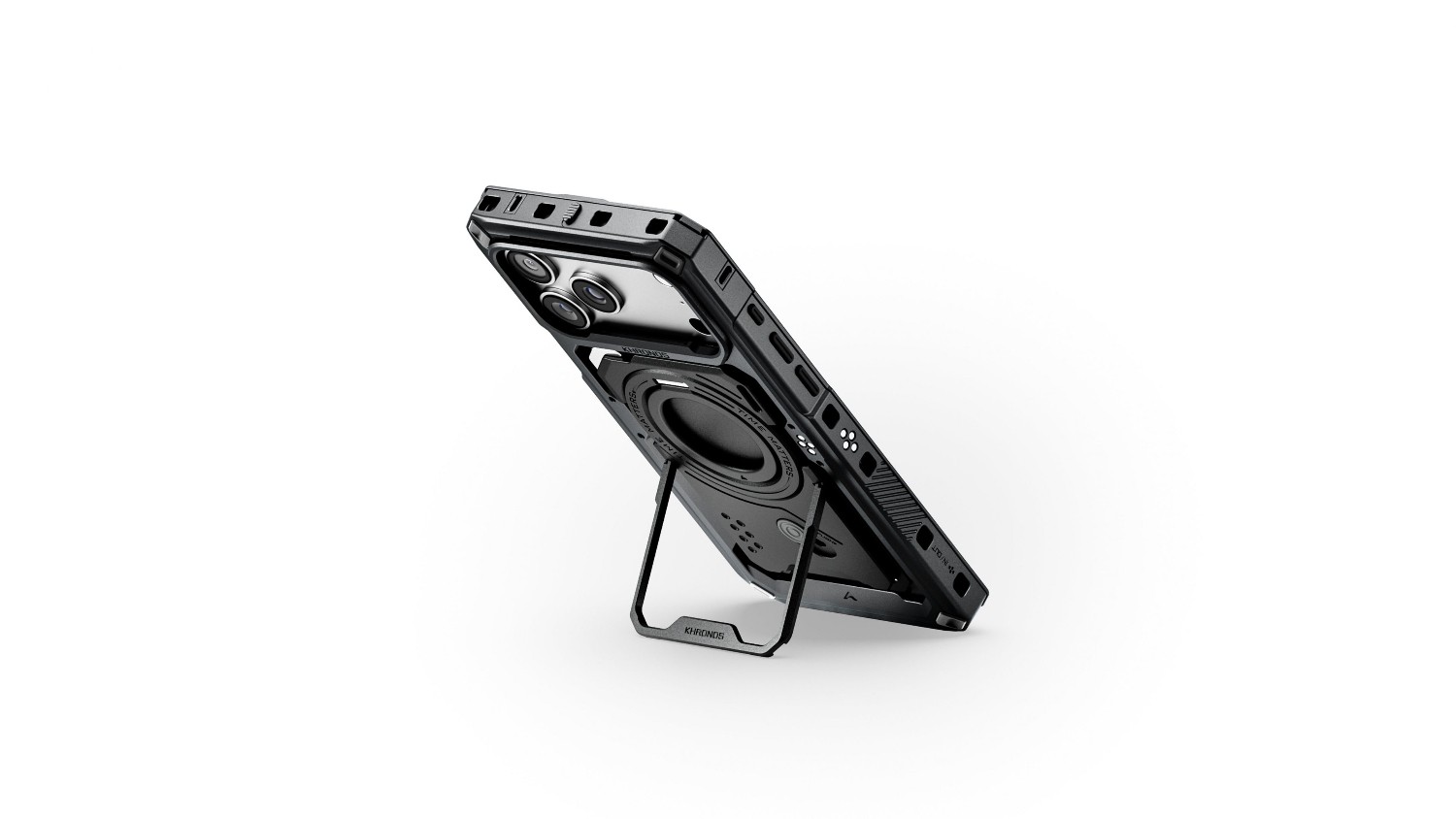 La funda Khronos para iPhone 17 Pro Max (negra) ofrece una protección profesional y la posibilidad de fijarla, lo que convierte tu smartphone en un sistema de cámara listo para grabar vídeos. Su elegante acabado en negro complementa el diseño del teléfono y, al mismo tiempo, aumenta su funcionalidad.