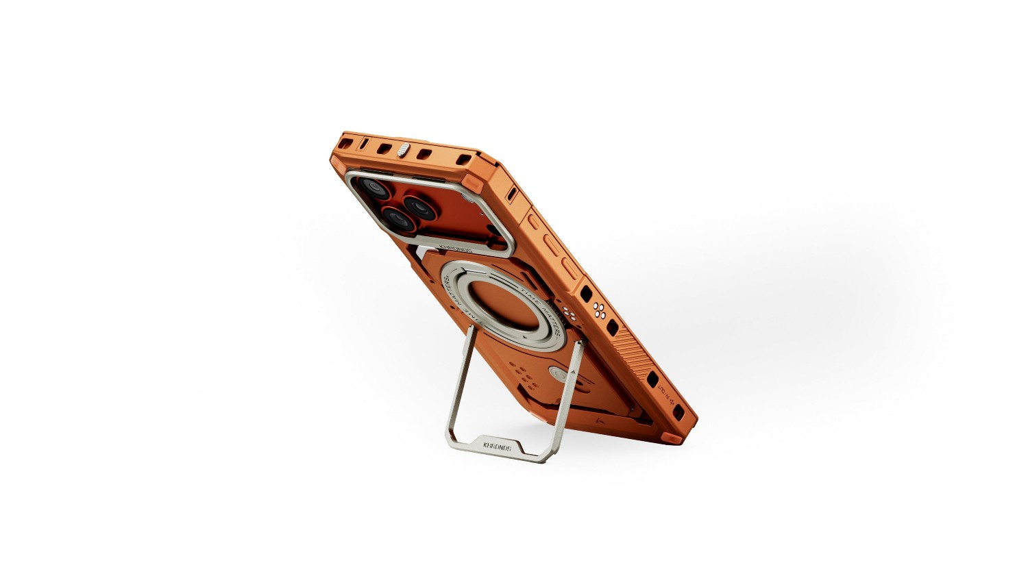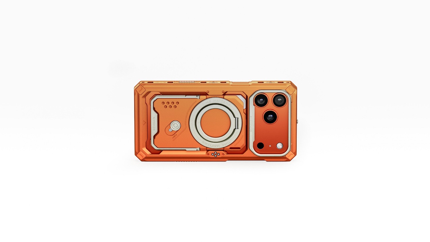 La funda Khronos para iPhone 17 Pro Max (naranja) va más allá de la protección estándar y funciona como una funda de estilo cinematográfico altamente funcional para cineastas móviles exigentes. Está diseñada teniendo en cuenta la resistencia, el estilo y una excelente capacidad de ampliación.