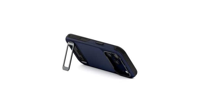 La funda Tilta Khronos Lite en color azul oscuro es una funda protectora ligera y profesional diseñada específicamente para el iPhone 17 Pro. Cuenta con un soporte integrado para ver el dispositivo sin necesidad de usar las manos, una placa trasera magnética para fijar accesorios y una protección reforzada para la cámara y las esquinas.