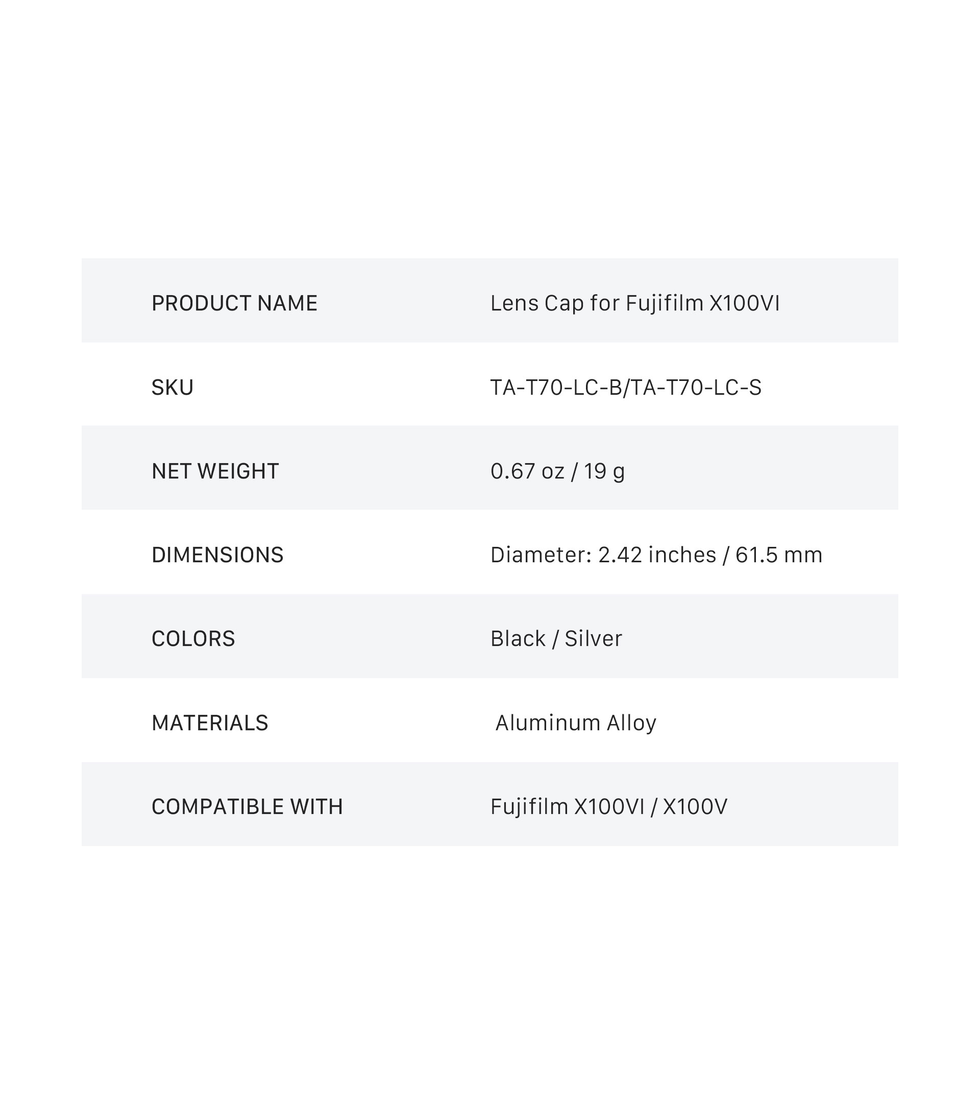Tilta Lens Cap for Fujifilm X100VI - Silver