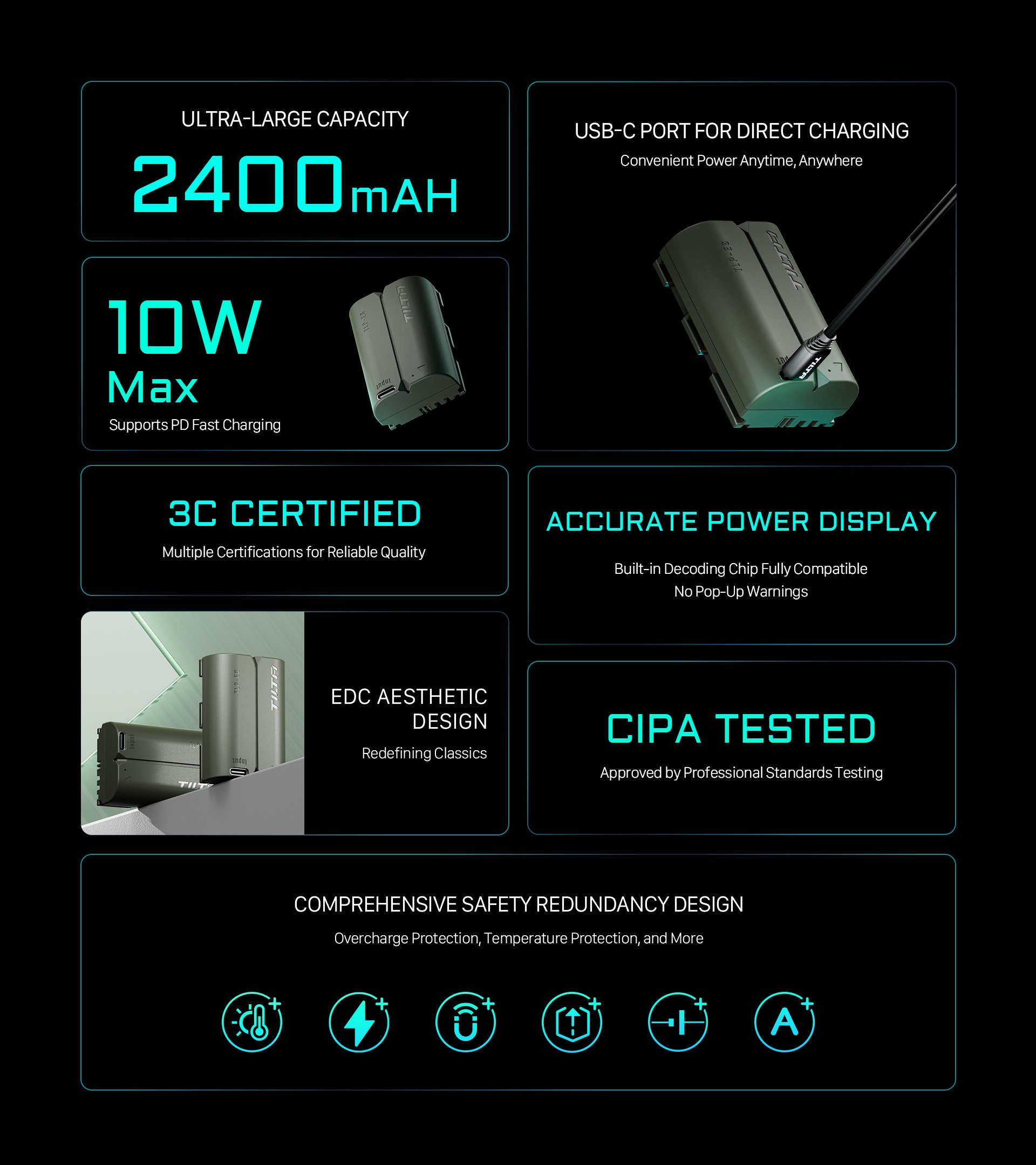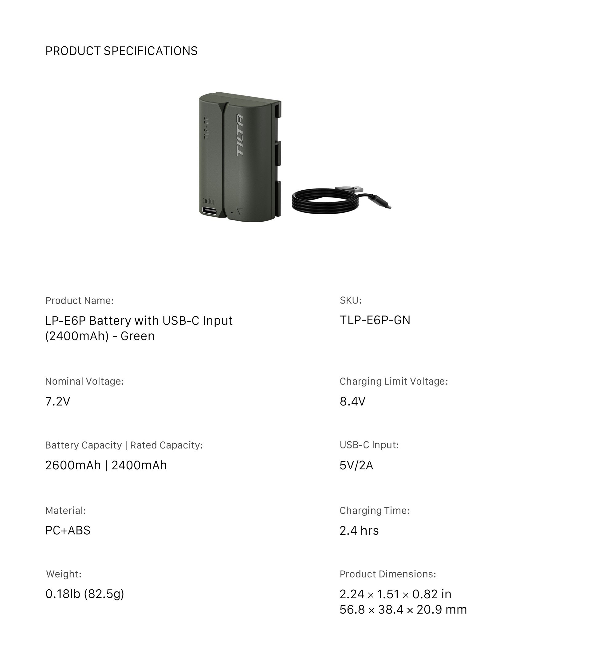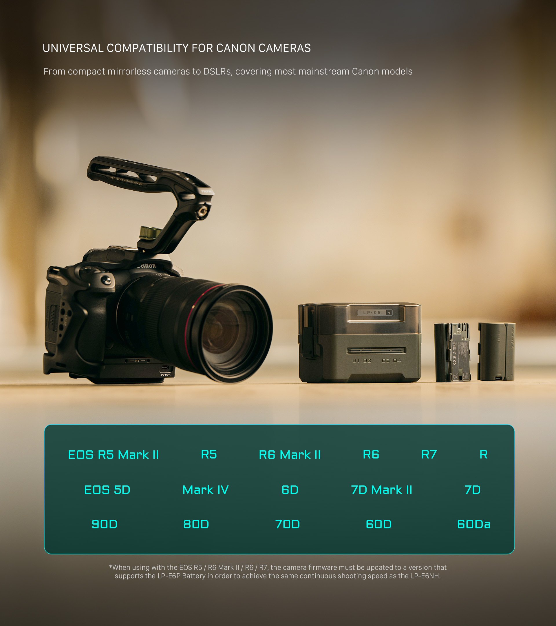 La batería de alta capacidad LP-E6P está diseñada para proporcionar energía fiable y duradera a tu cámara y garantizarte sesiones fotográficas más largas sin interrupciones. Esta batería cuenta con una innovadora célula de alta densidad energética y ofrece una mayor autonomía, por lo que es ideal tanto para la fotografía como para la grabación de vídeo.