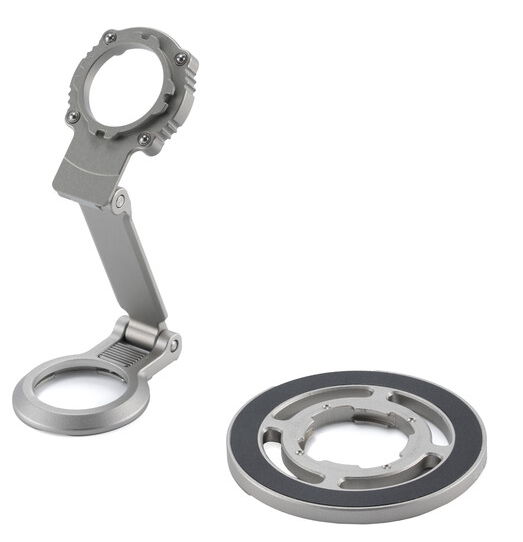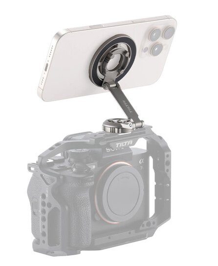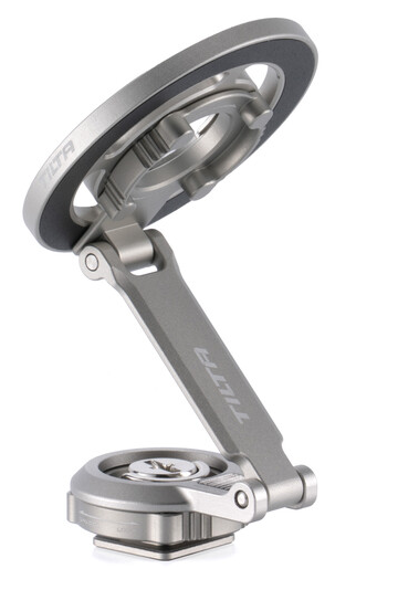 El kit de montaje articulado magnético de Tilt (gris titanio) ofrece una solución universal para el montaje con ajuste continuo en dos ejes y un soporte magnético compatible con MagSafe. El kit está diseñado para smartphones y fundas e incluye un brazo articulado y tres bases intercambiables —flash frío, rosca de 1/4"-20 y almohadilla adhesiva— que permiten un montaje flexible en diversas configuraciones.