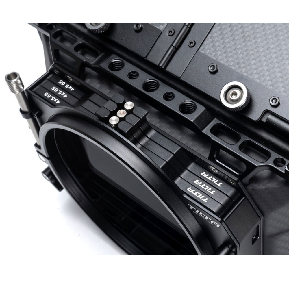 Esta caja mate de fibra de carbono, con unas dimensiones de 4 × 5,65, está diseñada para acoplarse directamente a objetivos de dimensiones estándar para película de cine, con el fin de que resulte lo más ligera y discreta posible. Incluye un anillo adaptador para el objetivo que se ajusta al diámetro frontal que elijas.