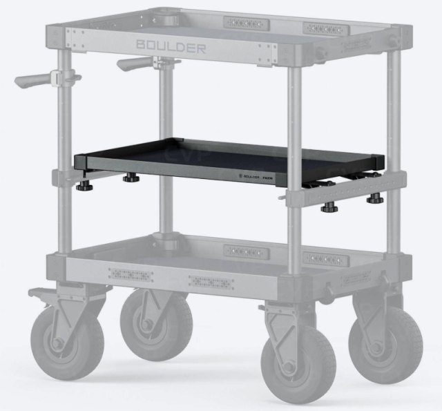 La bandeja intermedia Tilta TC-MLT-B (negra) es una robusta bandeja de aluminio que se puede montar rápidamente entre los rieles inferiores del bastidor de cualquier carro de cámara Boulder. De este modo, ofrece una práctica superficie intermedia para colocar baterías, cargadores, herramientas o monitores, mientras que la bandeja superior queda libre y la parte inferior queda accesible para maletas más grandes.