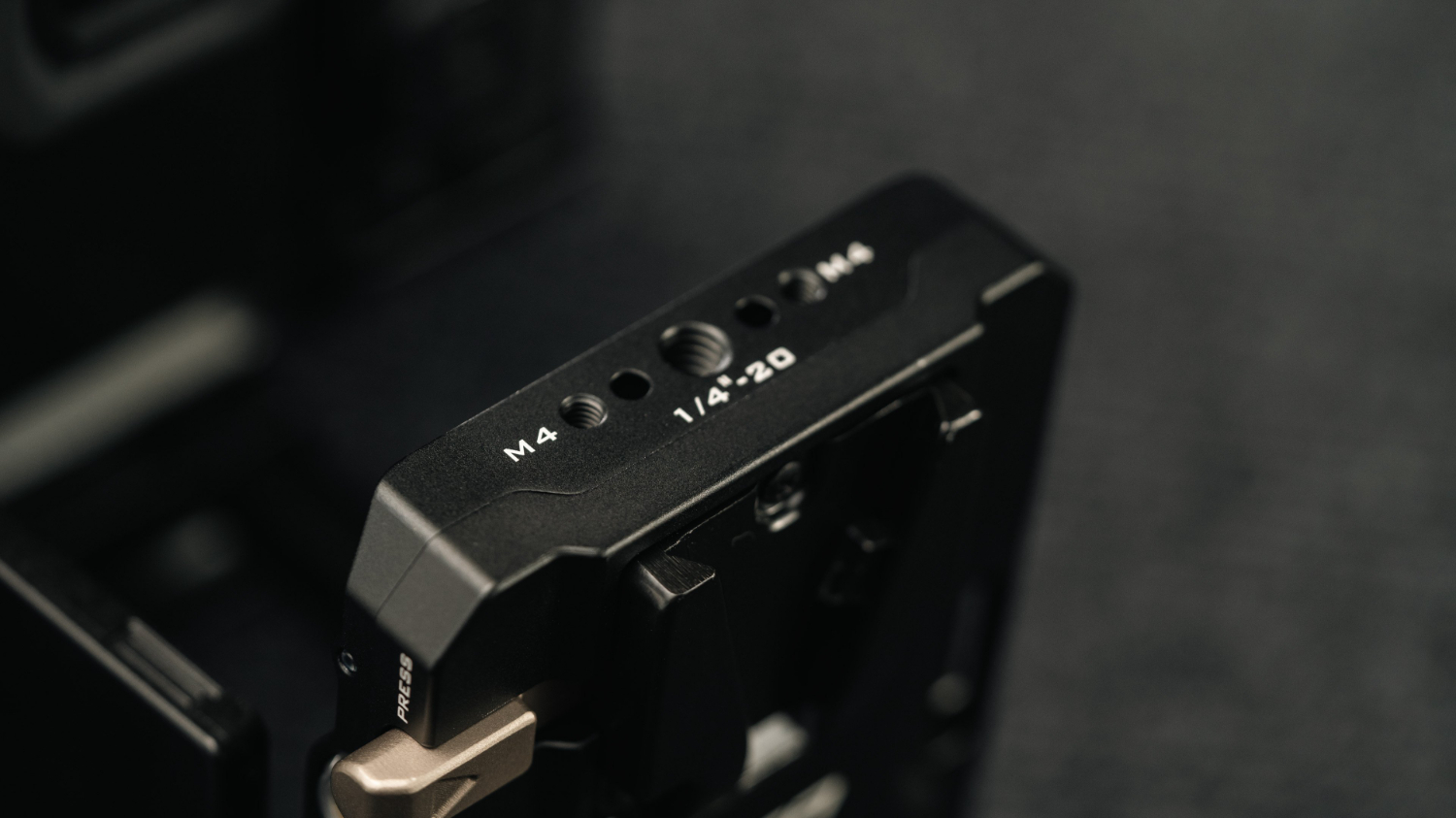 La placa de batería también está equipada con roscas de 1/4"-20 y M4 en la parte superior, lo que permite un montaje sencillo de la unidad de formas únicas mediante adaptadores adicionales o brazos articulados.