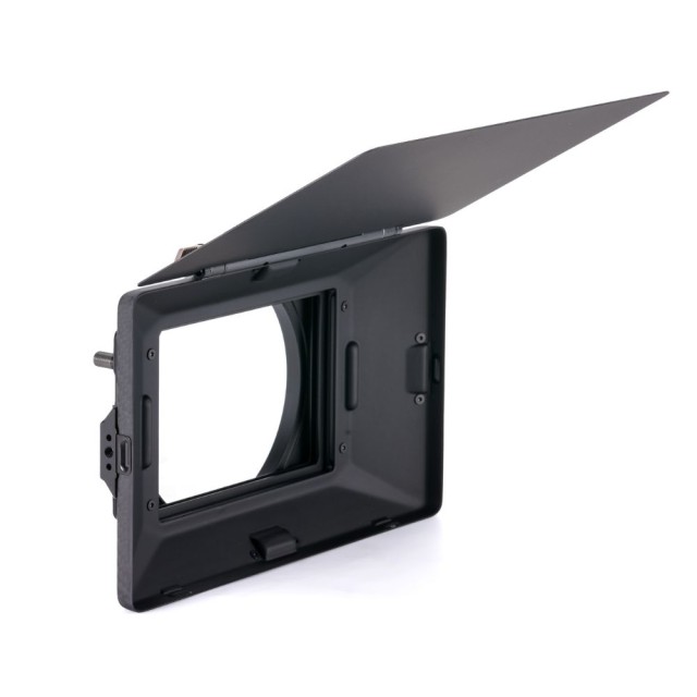 El cuerpo del matte box utiliza un exclusivo sistema magnético de encaje a presión que permite retirar fácilmente el parasol delantero y, por lo tanto, reducir el peso del dispositivo, sin dejar de poder utilizar hasta tres filtros a la vez.
