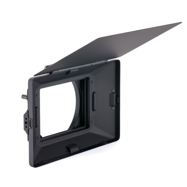 El cuerpo del matte box utiliza un exclusivo sistema magnético de encaje a presión que permite retirar fácilmente el parasol delantero y, por lo tanto, reducir el peso del dispositivo, sin dejar de poder utilizar hasta tres filtros a la vez.