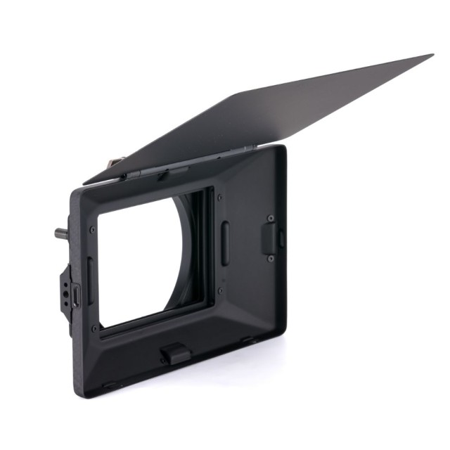 El cuerpo del matte box utiliza un exclusivo sistema magnético de encaje a presión que permite retirar fácilmente el parasol delantero y, por lo tanto, reducir el peso del dispositivo, sin dejar de poder utilizar hasta tres filtros a la vez.
