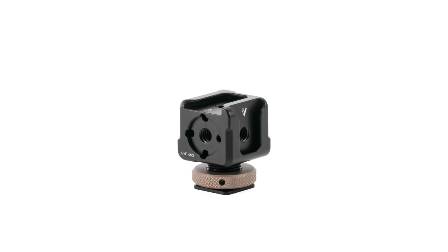 Este soporte se acopla mediante un conector Cold Shoe, que permite fijarlo fácilmente a la mayoría de nuestras jaulas para cámaras, o mediante una rosca de 1/4″-20 situada en la parte inferior.