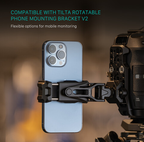 El adaptador Tilta TA-PMB5-NT-B NATO es un conector ligero de liberación rápida que convierte al instante el soporte giratorio para teléfono Tilta V2 en un soporte para smartphone compatible con el riel NATO, ideal para fijar el teléfono (como monitor de director, pantalla de receptor inalámbrico o contrapeso de un gimbal) a cualquier barra NATO estándar en cuestión de segundos sin torceduras gracias a los pasadores de posicionamiento dobles ARRI.