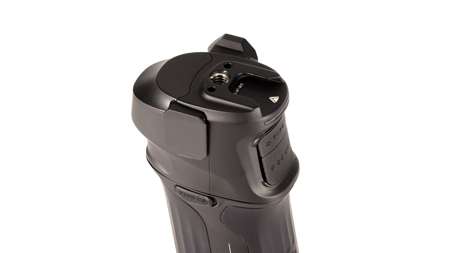 Esta empuñadura también permite a los usuarios alimentar accesorios a través de las salidas USB-C y DC integradas.