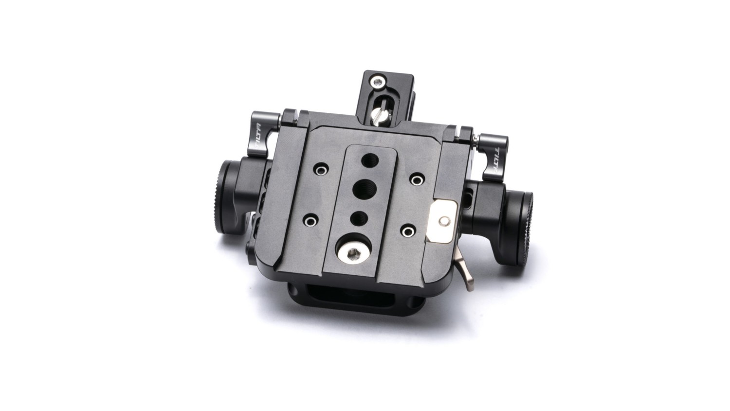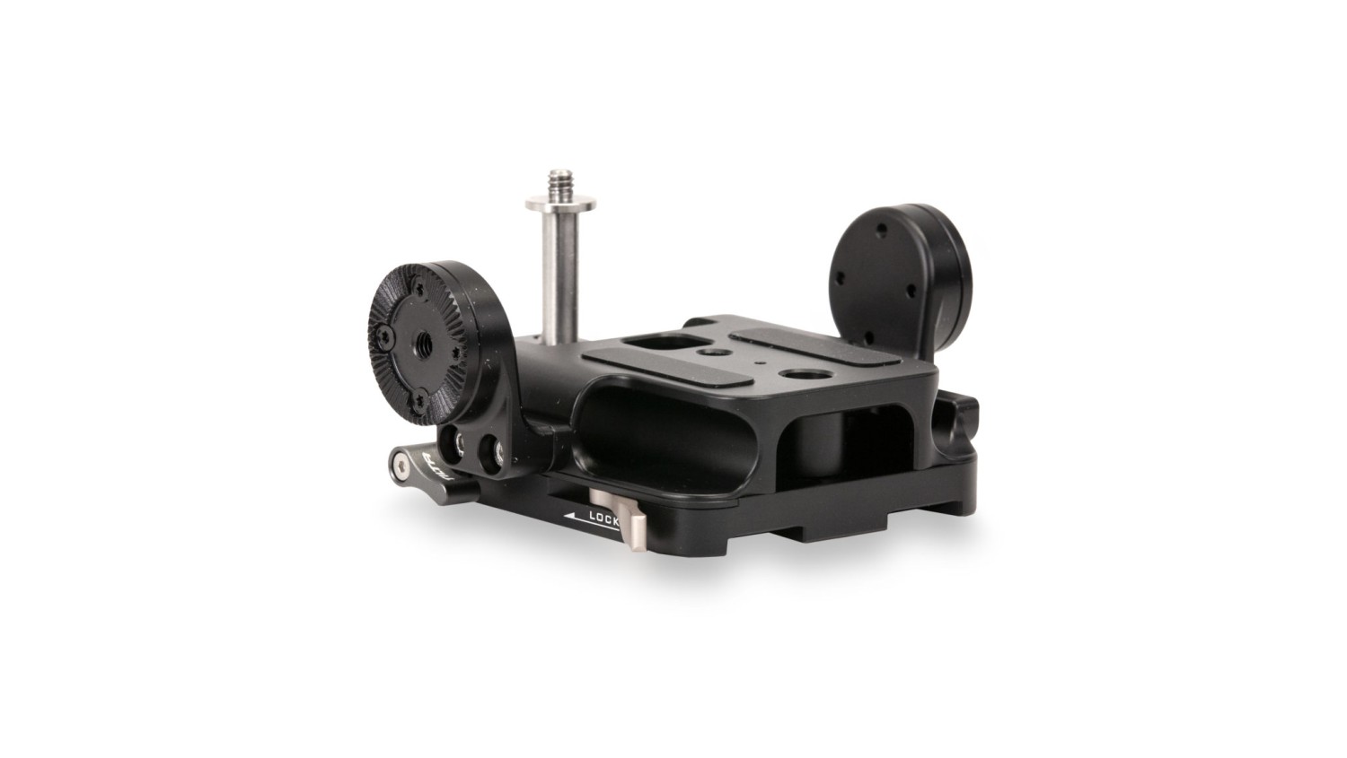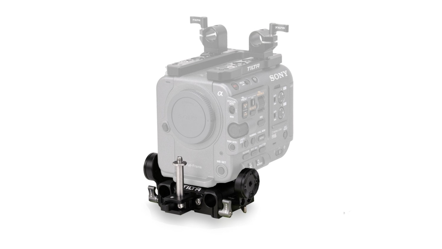 Esta placa base para la Sony FX6 también permite acoplar diversos accesorios mediante varillas LWS de 15 mm en la parte delantera o trasera de la placa base.