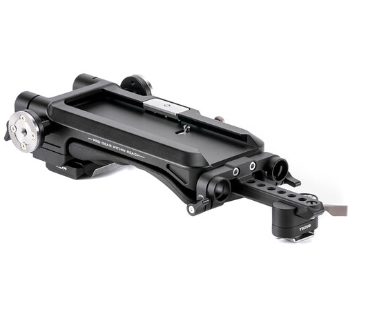 La base de fijación rápida para la almohadilla de hombro Tilta ES-T22-SPB es una base híbrida profesional para uso manual o con trípode, diseñada específicamente para la cámara Canon EOS C400. Combina una placa superior Manfrotto con fijación rápida, una base Sony VCT-U14, abrazaderas de barra LWS de 15 mm delanteras y traseras, una almohadilla de hombro blanda integrada, dos rosca ARRI y patas de apoyo integradas para el adaptador de objetivo, lo que permite pasar instantáneamente del trípode a la filmación sobre el hombro con un equilibrio perfecto.