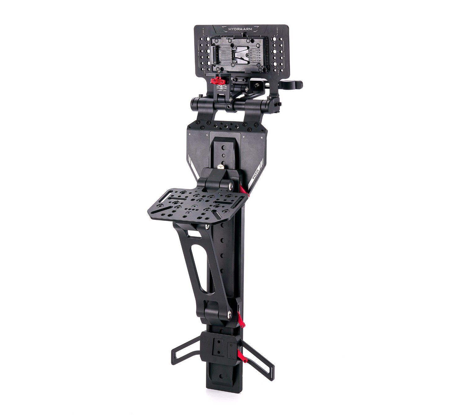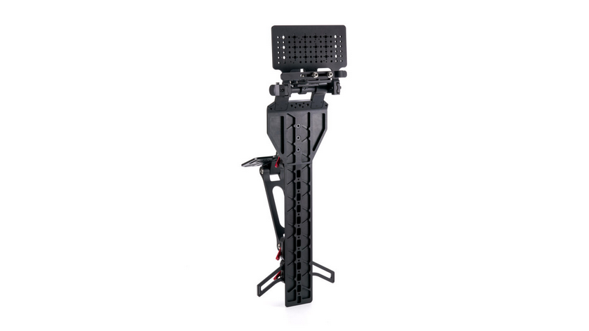 El soporte Tilta Rear Seat Monitor Mounting Bracket Pro está diseñado para fijar de forma segura monitores y controladores de gran tamaño en el asiento trasero de un coche equipado con una cámara. Se fija al reposacabezas y cuenta con un soporte de suelo largo para mayor estabilidad. La parte superior incluye un punto de montaje articulado de 1/4″-20 para monitores y una placa de batería V-Mount integrada para alimentar los dispositivos. Este resistente soporte es ideal para montar sistemas de control de mayor tamaño, como por ejemplo los Master Wheels de DJI.