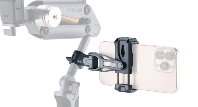 El Tilta TA-PMB5-15K-TG ofrece a los dispositivos móviles una flexibilidad total con calidad cinematográfica. La abrazadera de aluminio mecanizada con CNC está equipada con mordazas de silicona que sujetan con seguridad teléfonos de 60 a 90 mm de ancho, y ofrece una rotación completa de 360° y una inclinación de 180° para cambiar al instante entre los modos vertical/horizontal o cualquier ángulo entre ambos. Una abrazadera de barra de 15 mm con palanca de bloqueo se acopla directamente a las barras LWS estándar o al brazo central del Hydra Alien Mini, mientras que la base fría integrada y varias roscas de 1/4"-20 con puntos de fijación permiten acoplar al instante luces, micrófonos o receptores. Con un peso de tan solo 320 g, prácticamente no añade peso, pero convierte tu smartphone en un componente totalmente integrado de los equipos de cámara profesionales.