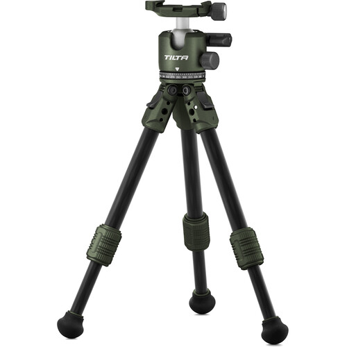 El cabezal esférico de mesa Tilta, con un pie de fibra de carbono de un solo tramo en un elegante color verde bosque, es ideal para fotógrafos y videógrafos que necesitan una solución de soporte portátil y resistente a la vez. Con una capacidad de carga máxima de 6,6 kg, este minitrípode es ideal para cámaras réflex digitales, cámaras sin espejo o accesorios como luces LED.